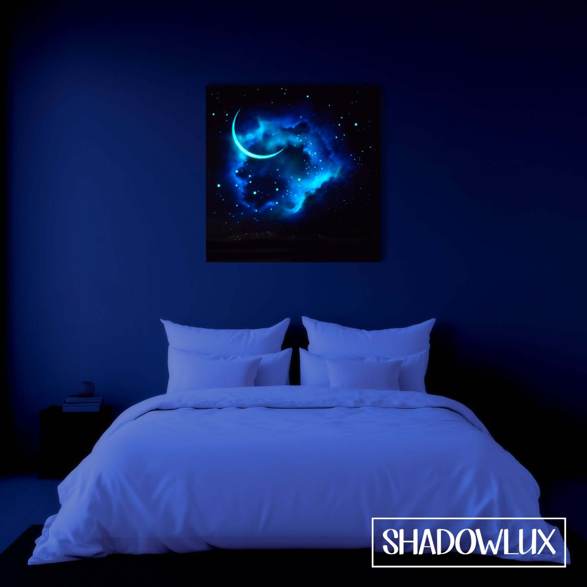 Create a glow in the dark art space that transforms your room into a peaceful retreat. This artwork absorbs light throughout the day and softly glows at night, adding a calming, soothing touch to bedrooms, kids' rooms, or any space in need of a magical ambiance. No batteries or electricity required—just natural light to charge it. Made from safe, non-toxic materials, it’s simple to hang and enjoy every night, helping you relax and sleep peacefully.